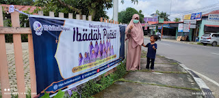 Pemasangan spanduk PD Salimah Kapuas sebagai ungkapan bersuka cita datangnya bulan suci Ramadhan bertempat di Jalan Tambun Bungai.